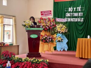 Đồng chí Trần Thị Nghĩa – Bí Thư Chi bộ khoá XV – đại điện Đoàn Chủ tịch phát biểu khai mạc Đại hội Chi bộ Công ty TNHH MTV Vắc xin Pasteur Đà Lạt lần thứ XVI